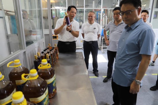 在食用油加工车间,傅强书记详细了解菜籽油的加工技术、产能及销售现状,菜籽油的营养组成及健康功能,以及与国内油脂加工企业的差距和优势。傅强书记强调,要对标国内外加工企业,加大技术研发与应用,带动贵州油料产业的高质量发展。
